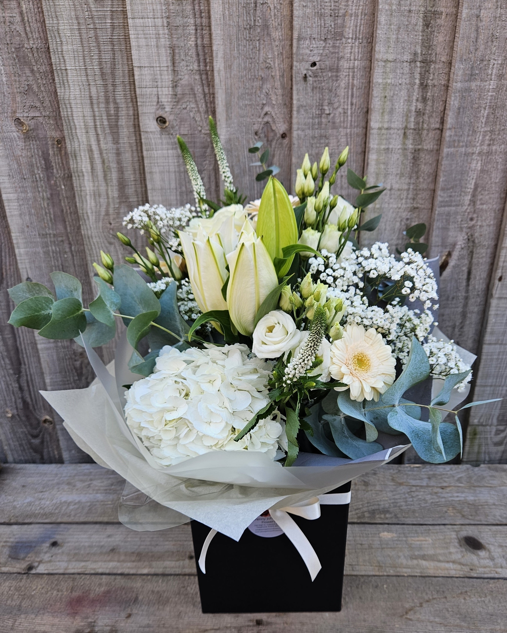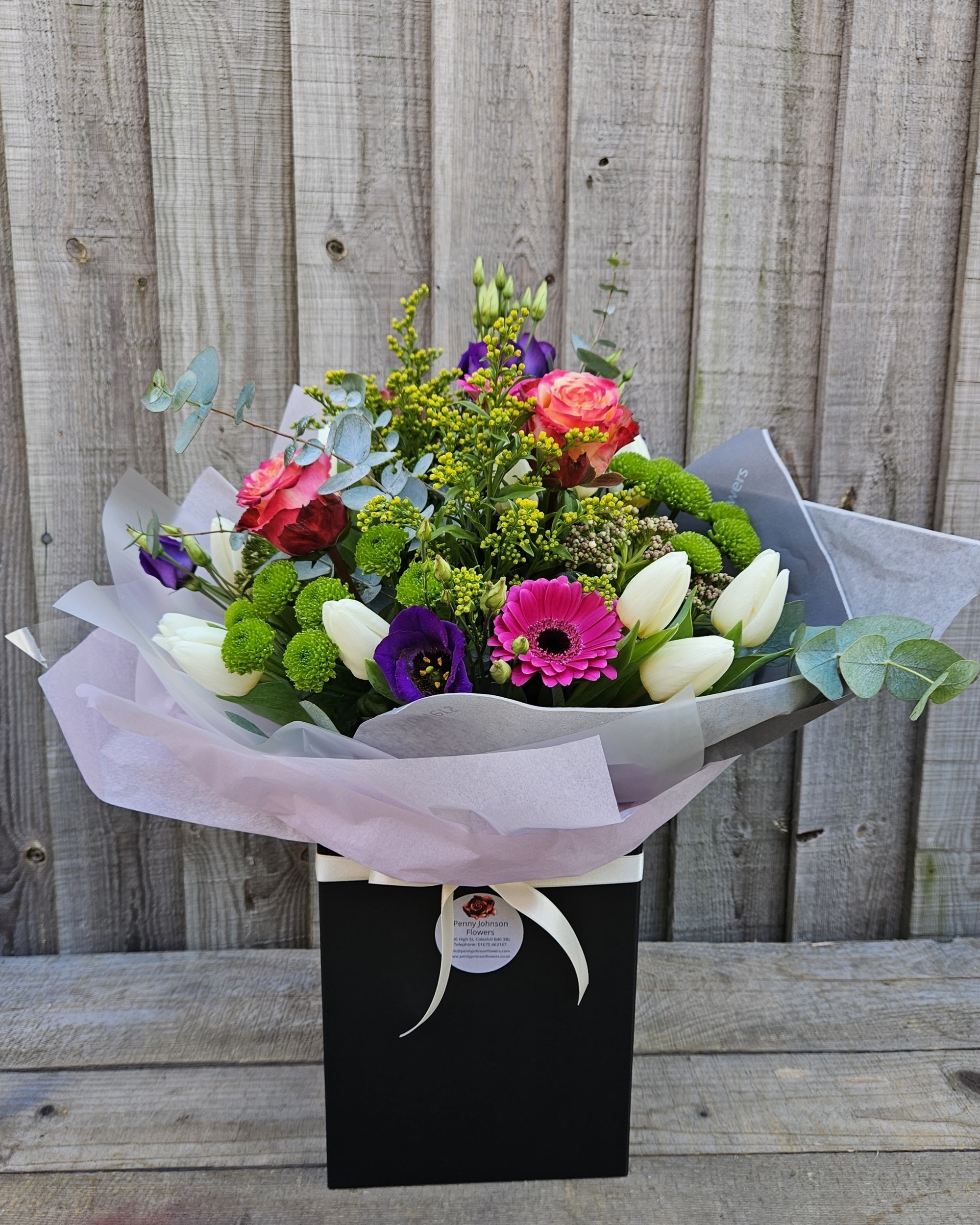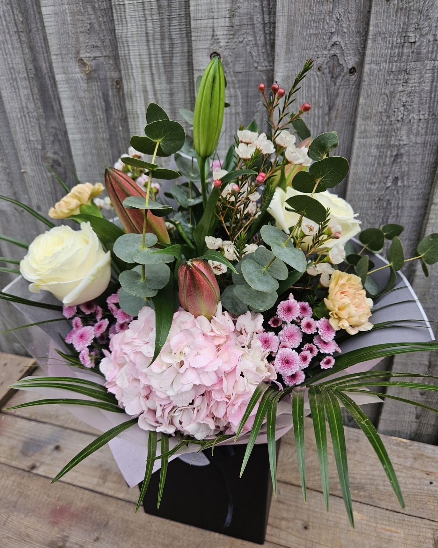 Each and every design is one-of-a-kind, created by an artisan florist using the freshest stems available on the day so, whilst your gift will look different to the one pictured, it’ll still be just as lovely.